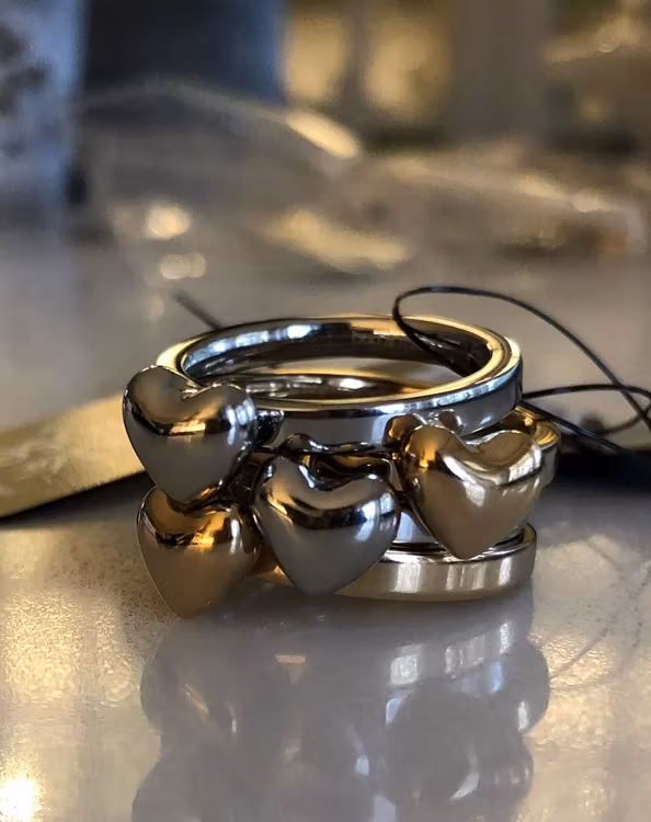 Söt hjärt-ring i stainless steel som passar perfekt till armband, halsband och örhängen