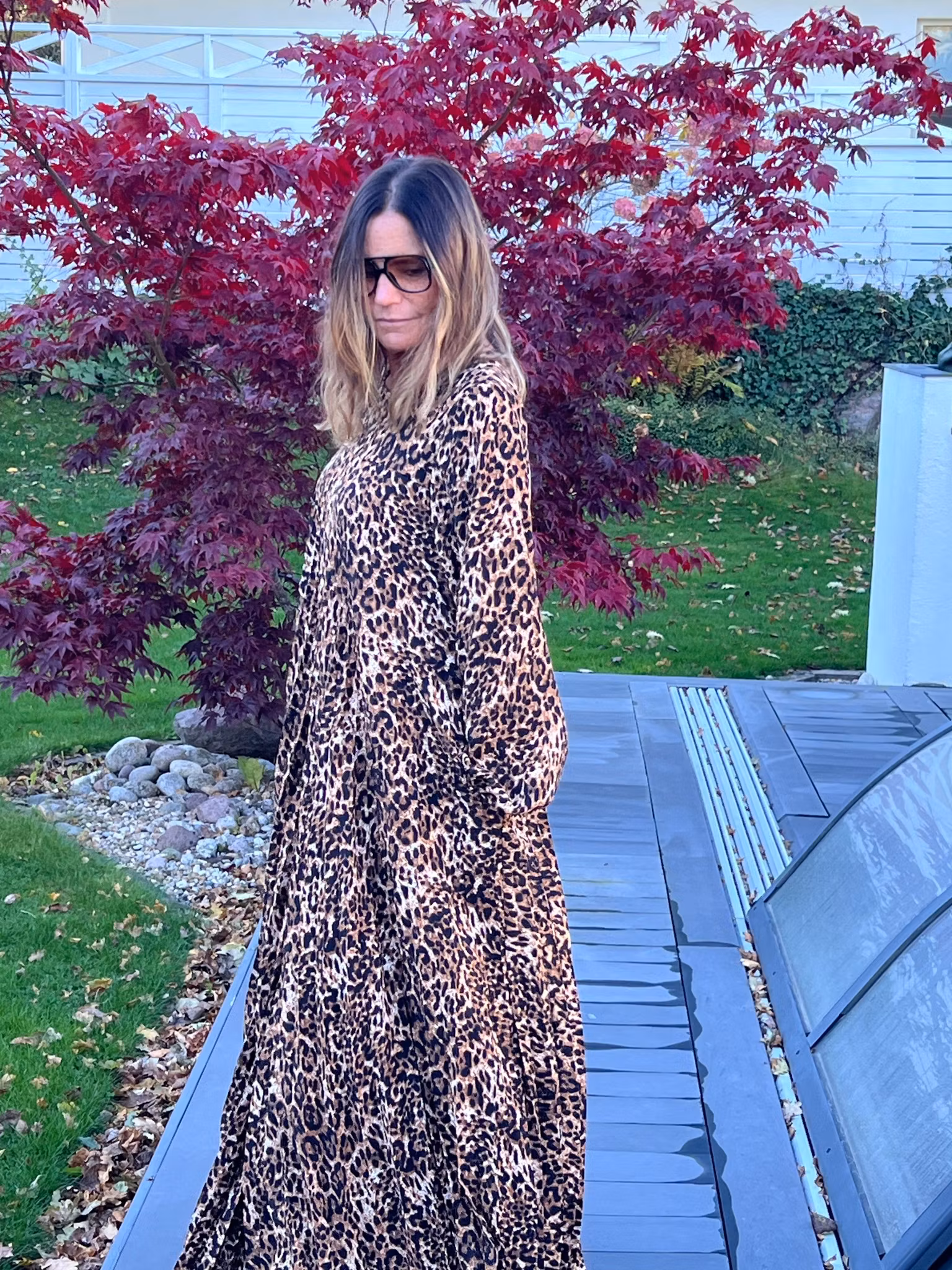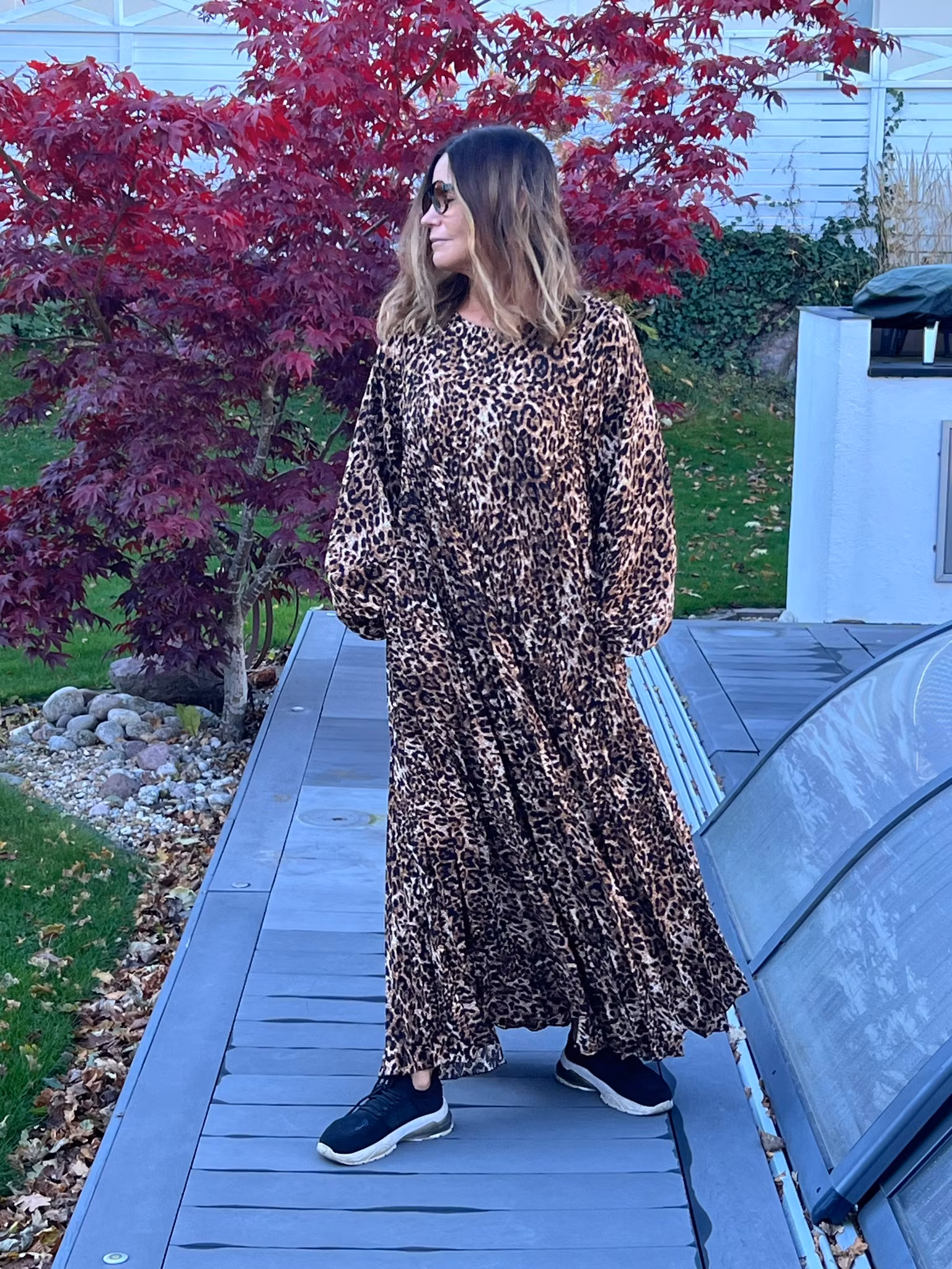 Modellen har lång ärm med lätt puffeffekt och bred manschett, samt