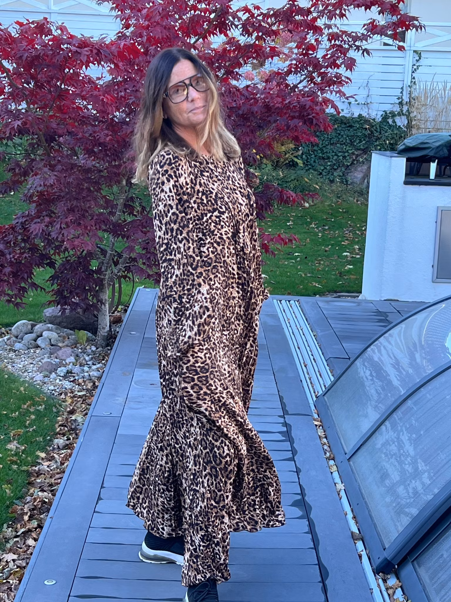 Den runda halsringningen och den diskreta siluetten gör den till ett stilrent val för både vardag och fest.