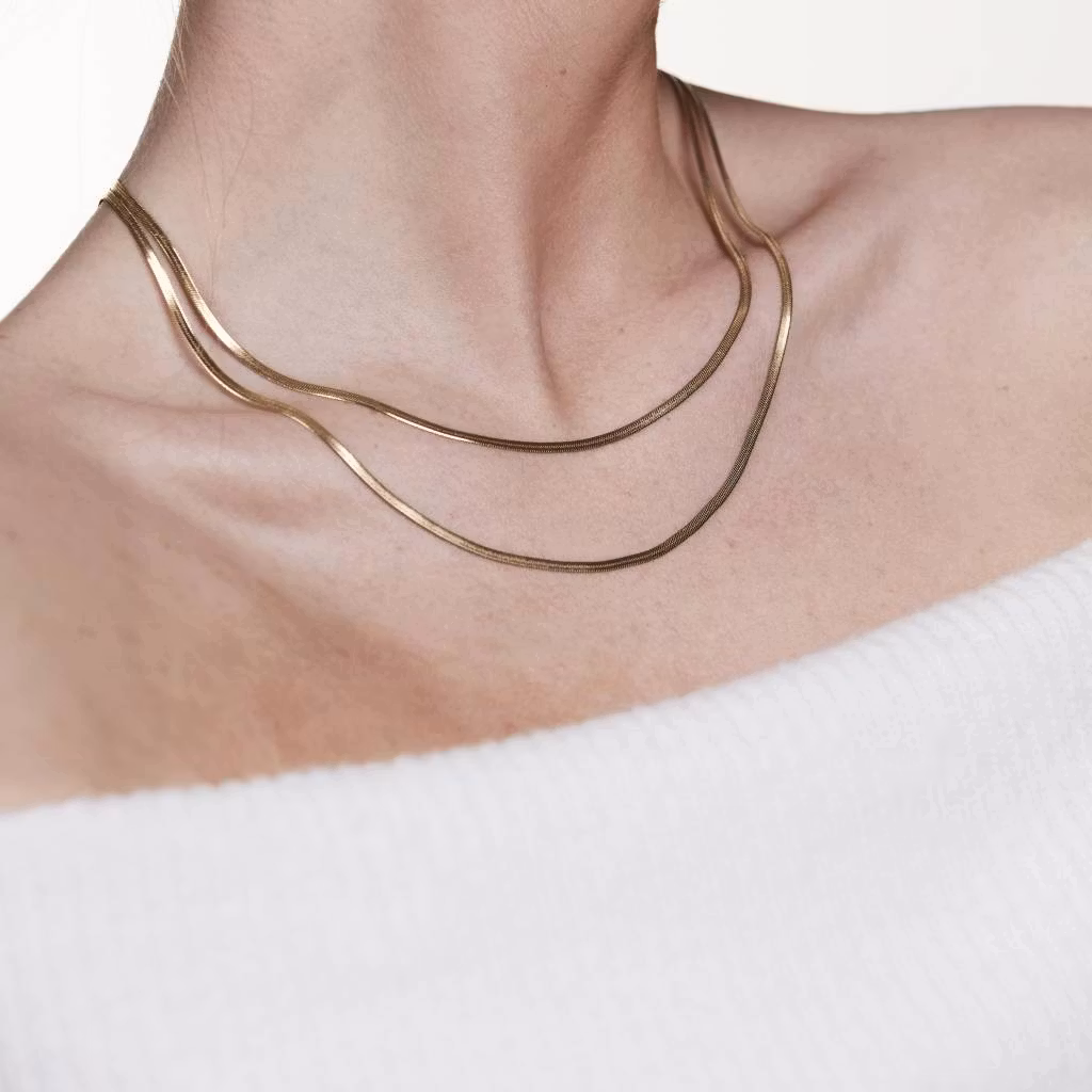 Angeline är en klassisk platt tät kedja som kommer i två olika sammanlänkade längder.