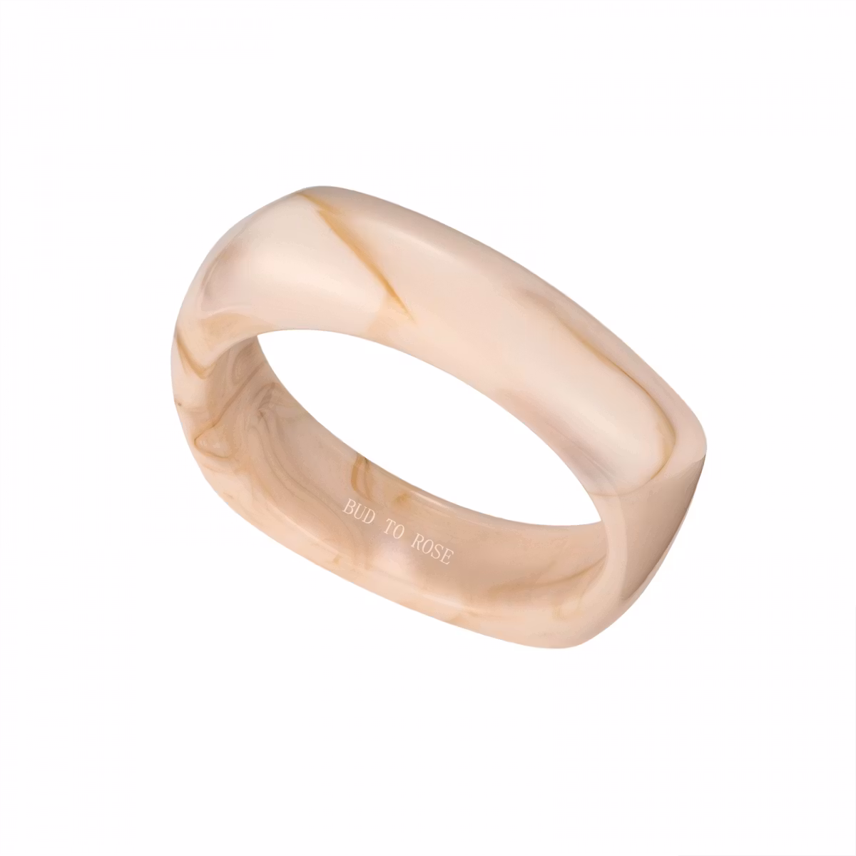 Skulpturalt och oemotståndligt trendigt – detta svarta resinarmband imponerar med sin mjukt rundade form och glansiga, marmorerade yta.