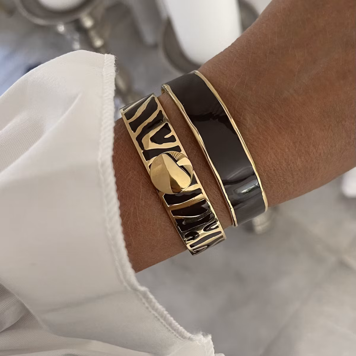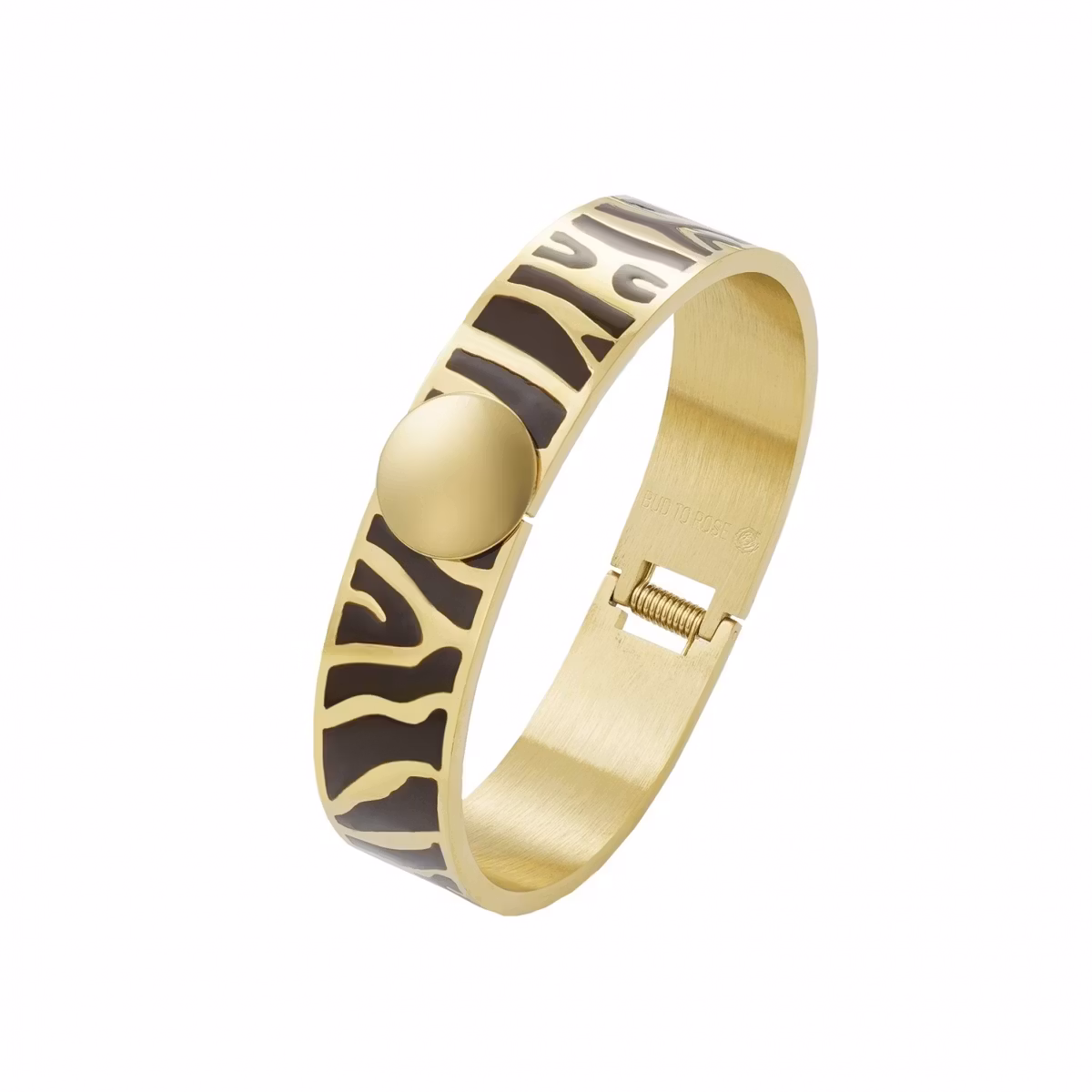 Capri Zebra Bangle är ett brett armband som fångar säsongens hetaste trend – zebramönster.