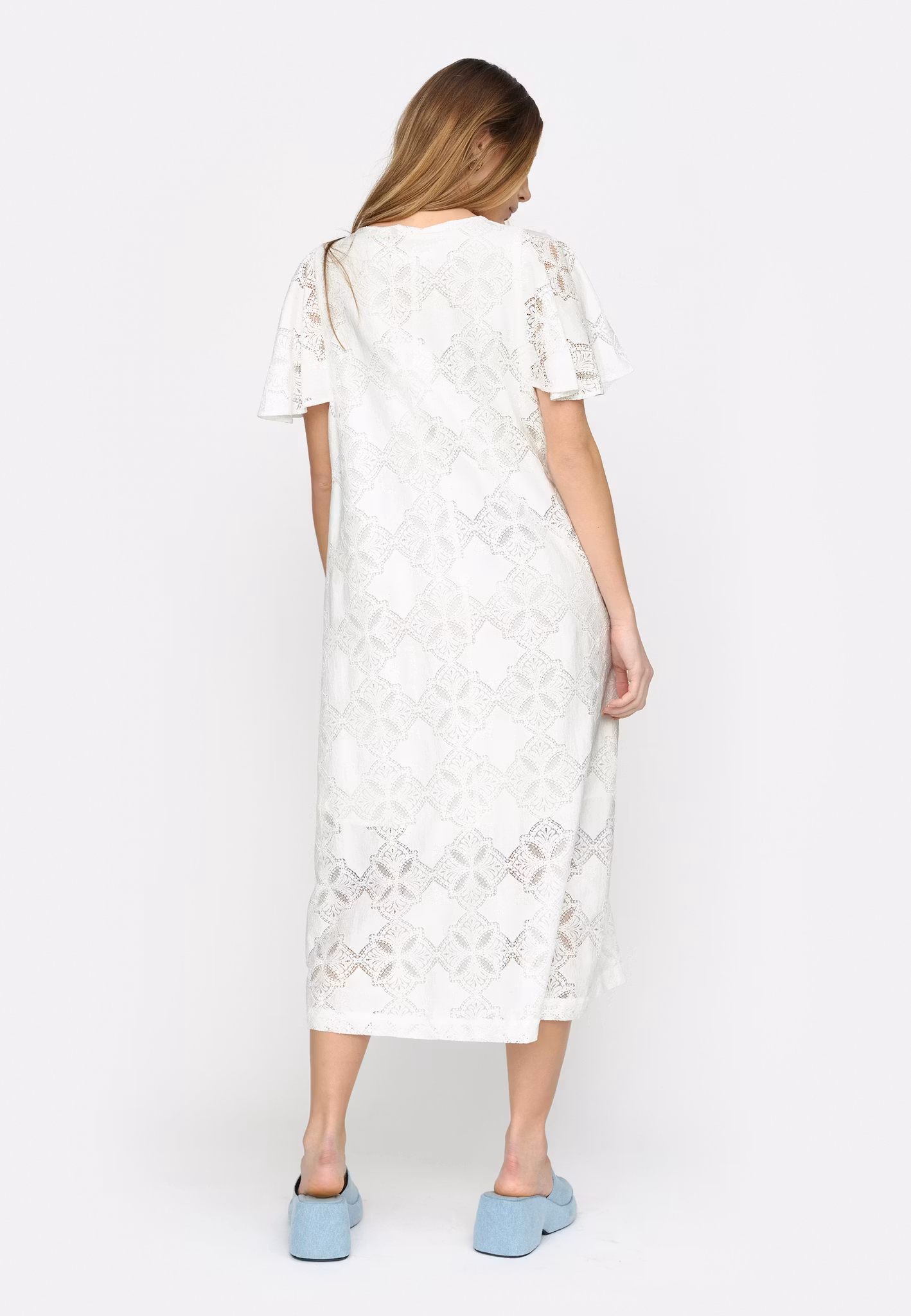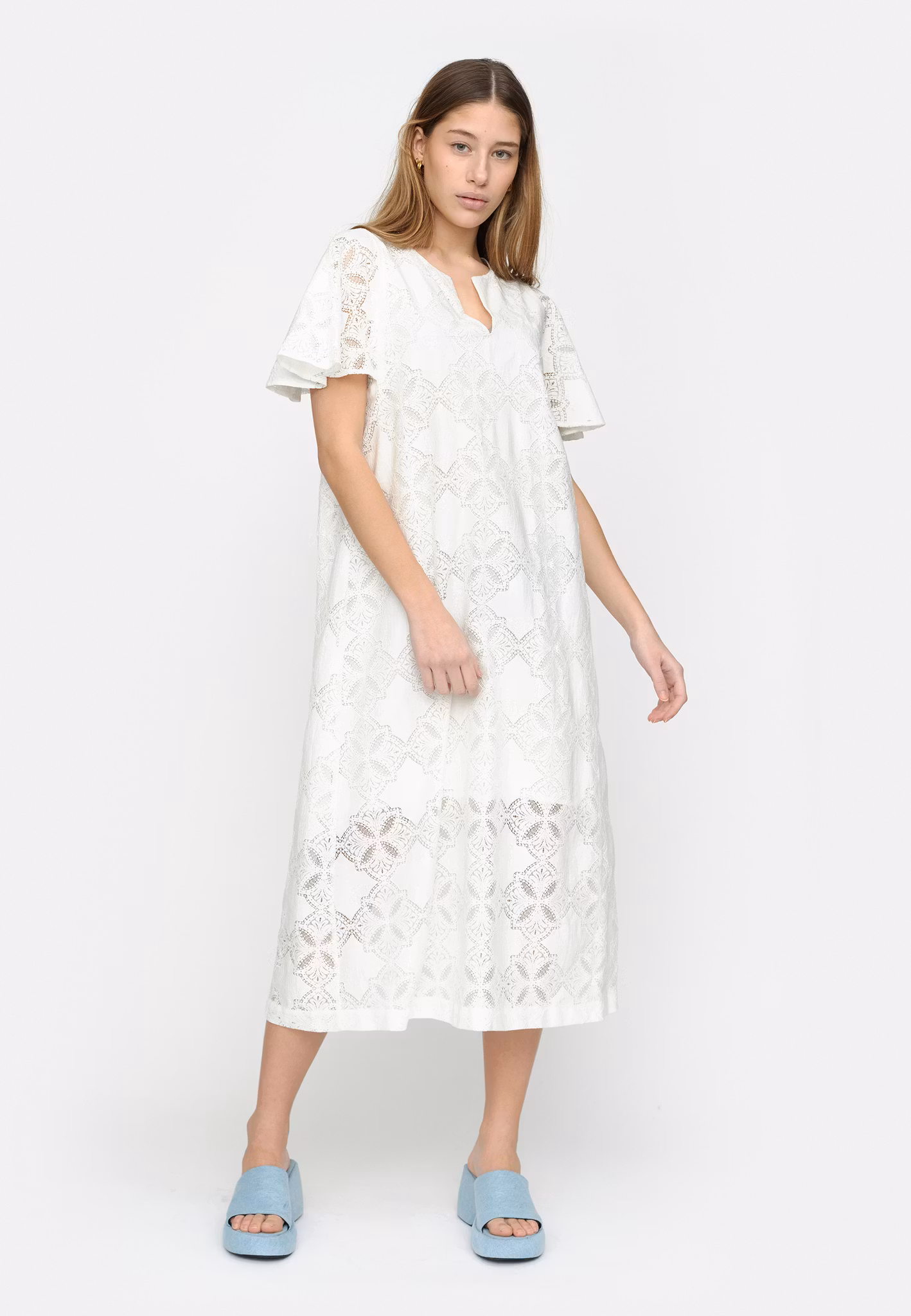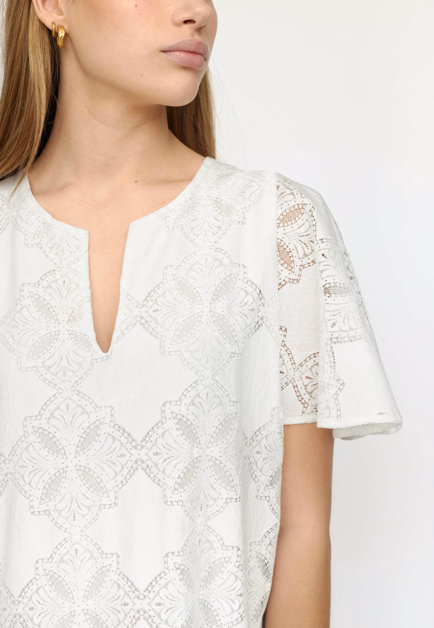 Så fin med v-ringad, vackra korta ärmar, lite A-form med spetsmönster ovanpå enfärgad.