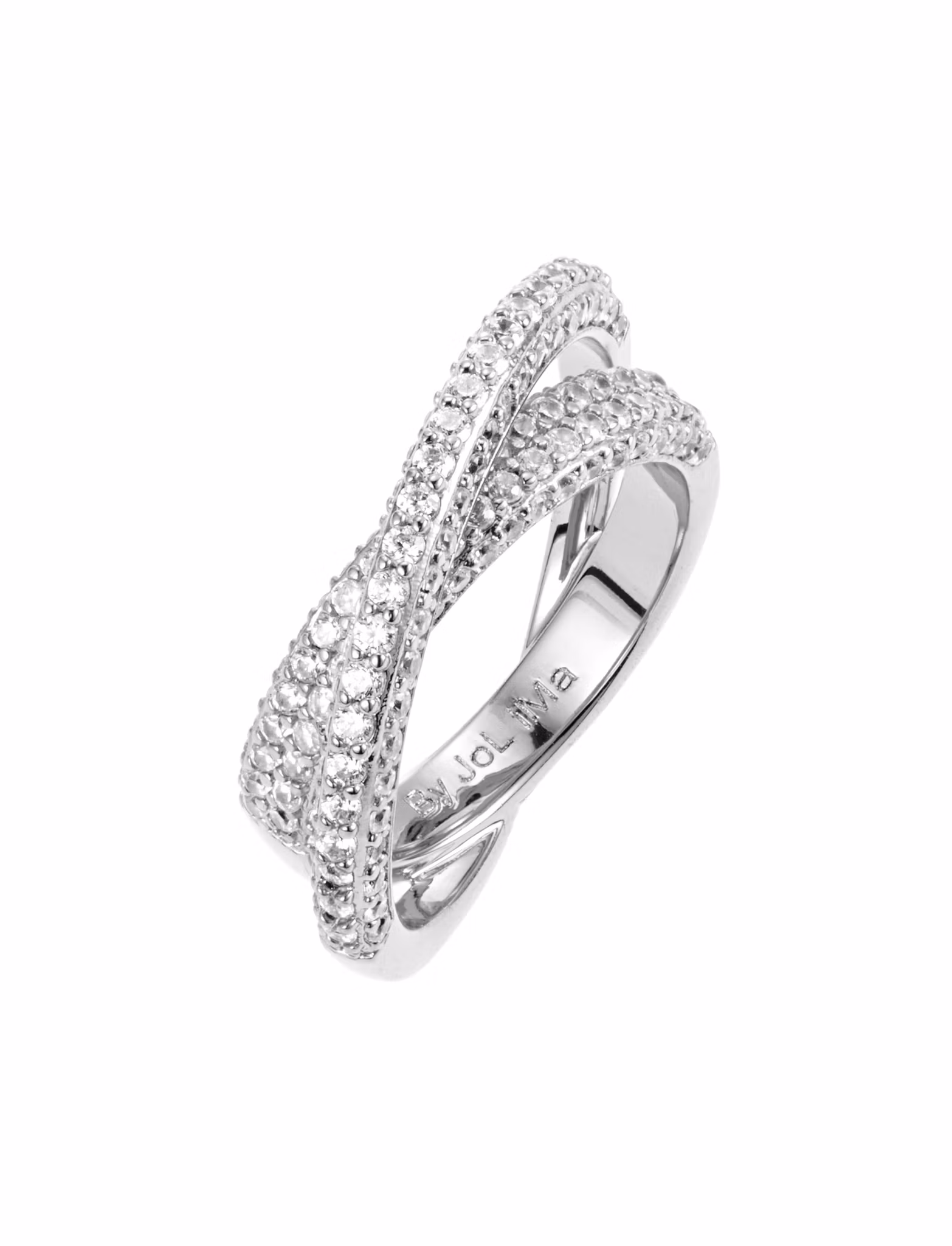 Silver och kristaller gnistrar härligt i denna lyxiga ring.