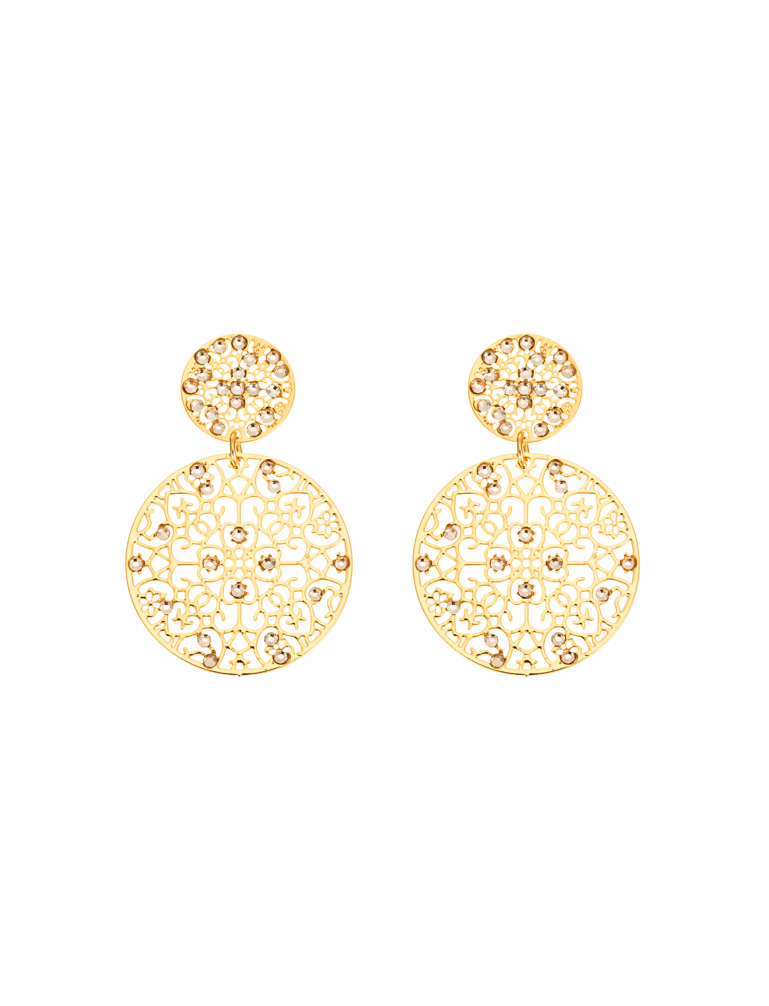 En ny variant av vår bästsäljare – perfekt för dig som vill bära ett smycke som verkligen drar blickarna till sig. Dessa eleganta örhängen pryds av gnistrande stenar och vackra, dekorativa detaljer som skapar ett sofistikerat och iögonfallande uttryck. Den luftiga designen ger ett exklusivt fall och fångar ljuset från varje vinkel.