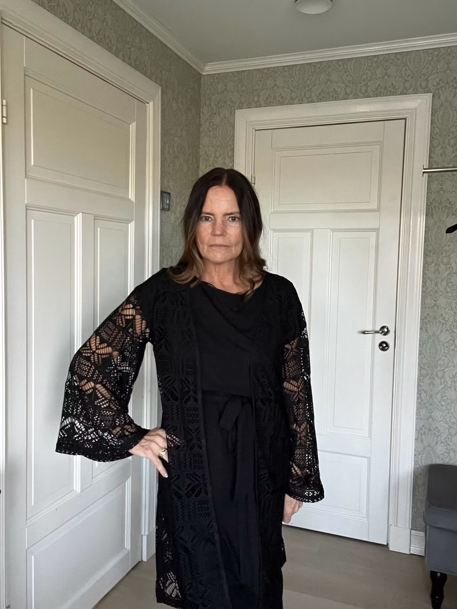 Modellen är 170 cm och bär storlek S.