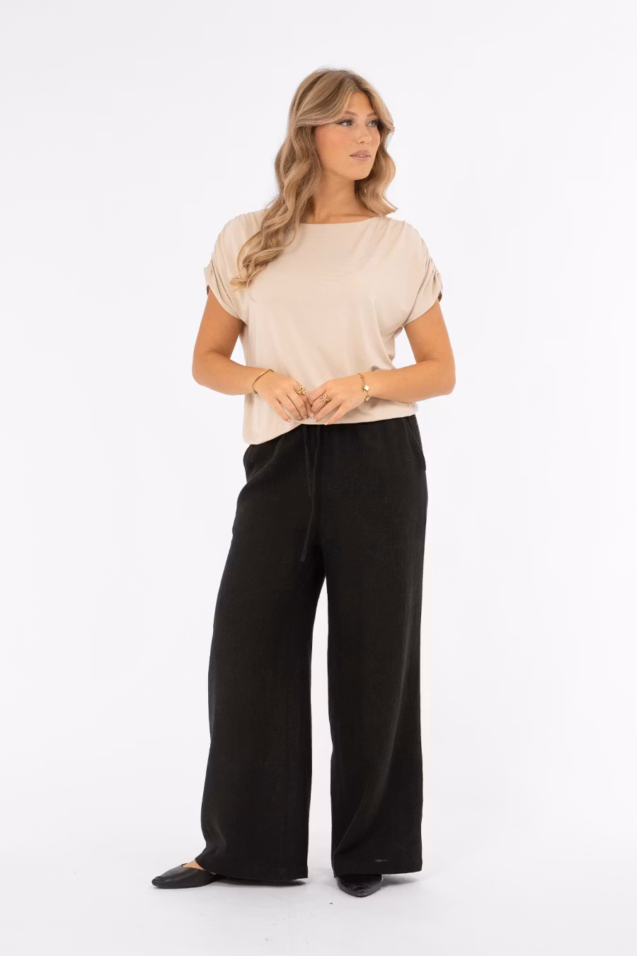 Ellery Topp – ledig trikåtopp med båt-ringning och rynkdetalj i axel. Avslappnad och mjuk topp, perfekt för vardag och avslappnad stil.