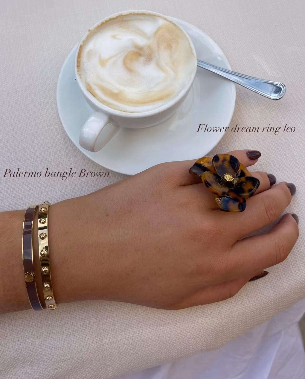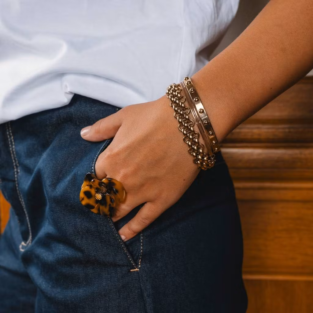 Denna vackra ring har en leopardmönstrad blomma som garanterat