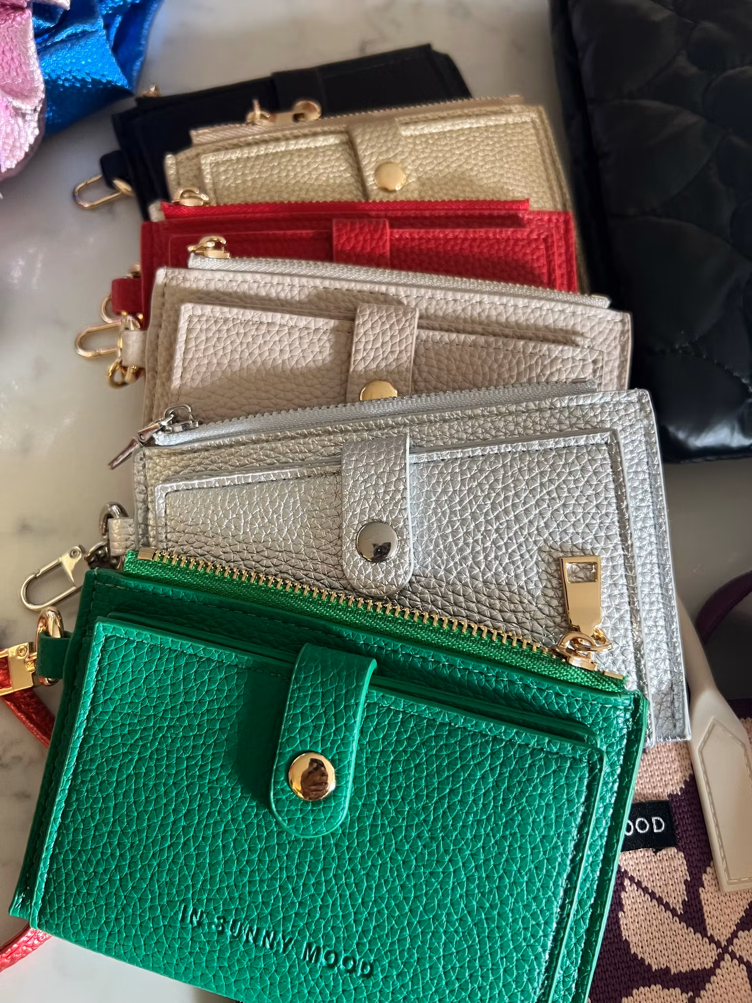 Fullända din look med den här snygga och stilrena mobilplånboken som har plats för alla dina kort och pengar. Den har flera fickor och stängs med en metallknapp och en dragkedja för att hålla alla dina saker i säkert förvar. Fäst den på din telefon eller använd den som en vanlig plånbok att bära i din väska.