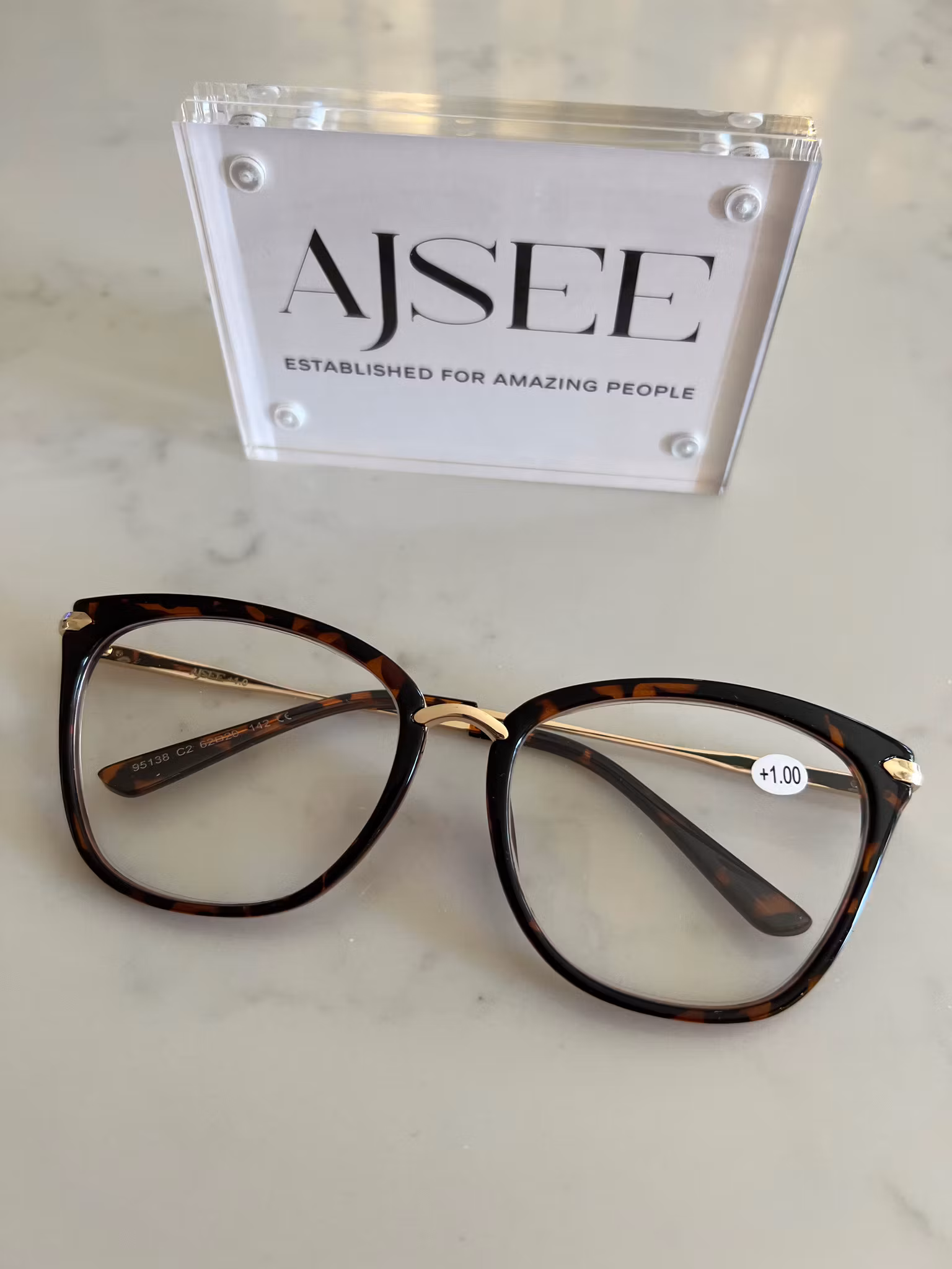 Ett fint glasögonfodral och putsduk medföljer läsglasögonen.
