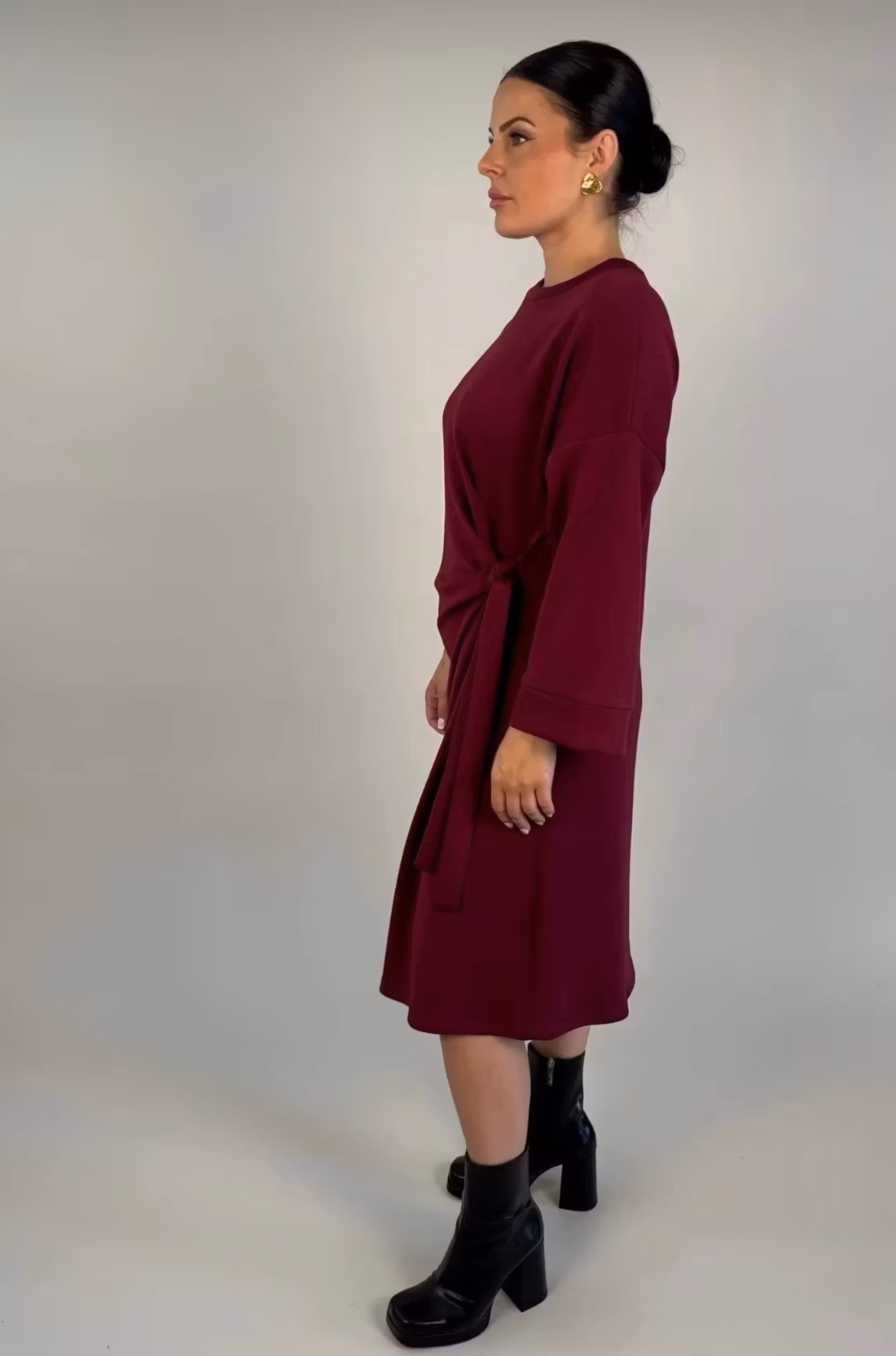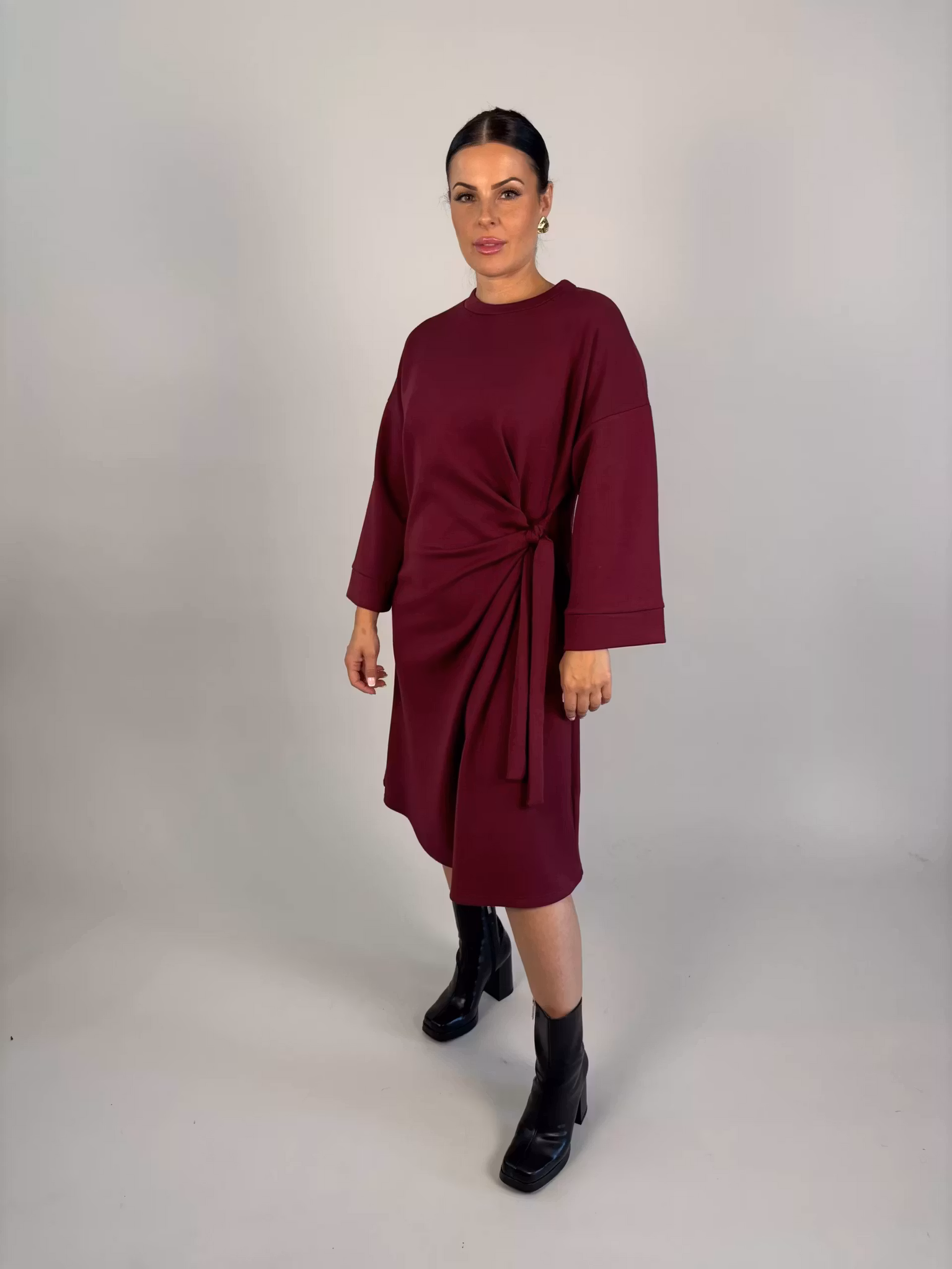 Klänning med knyte vid midjan i mjukaste viskosmix.