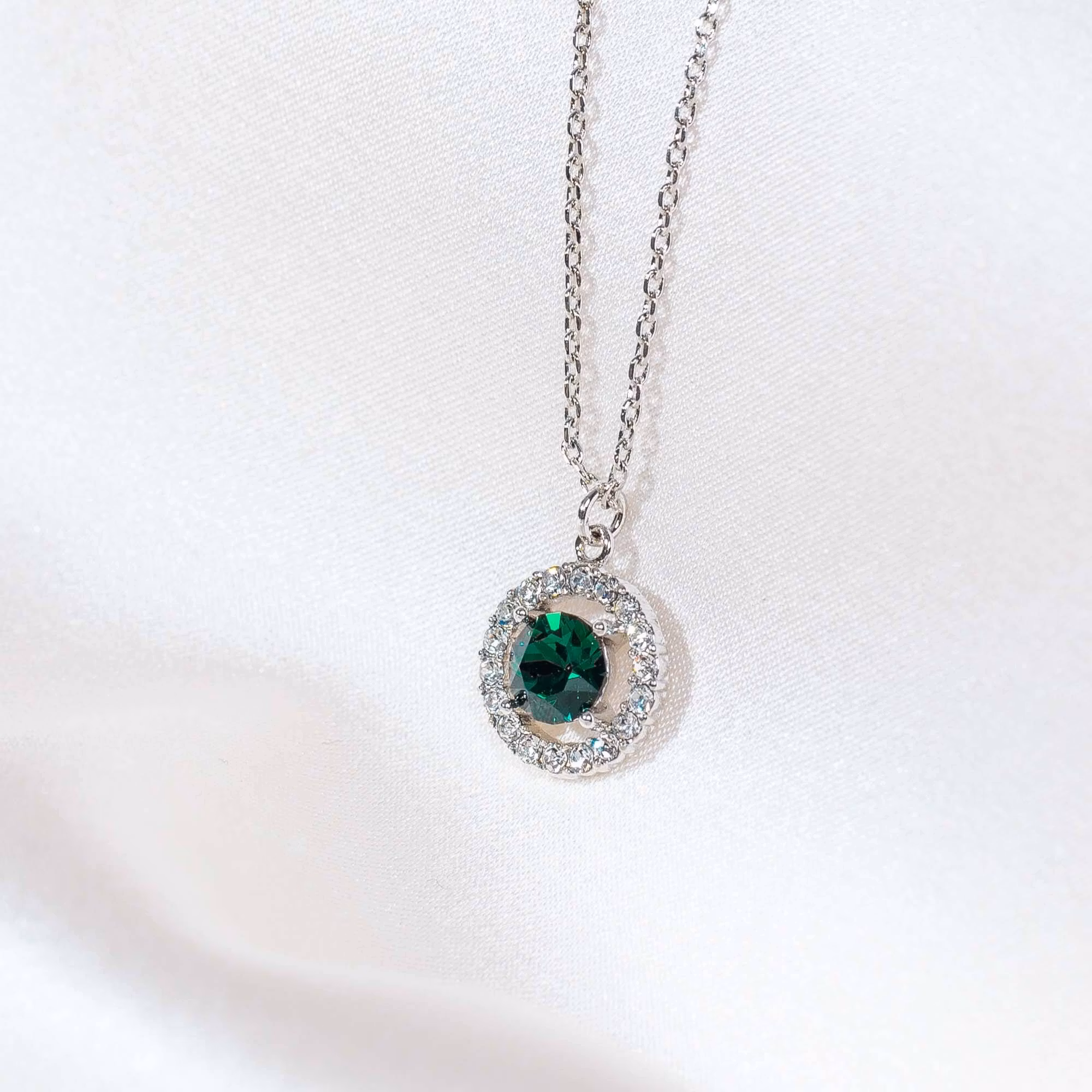 Halsbandet är subtilt och elegant med en gudomlig smaragdgrön kristall i mitten.