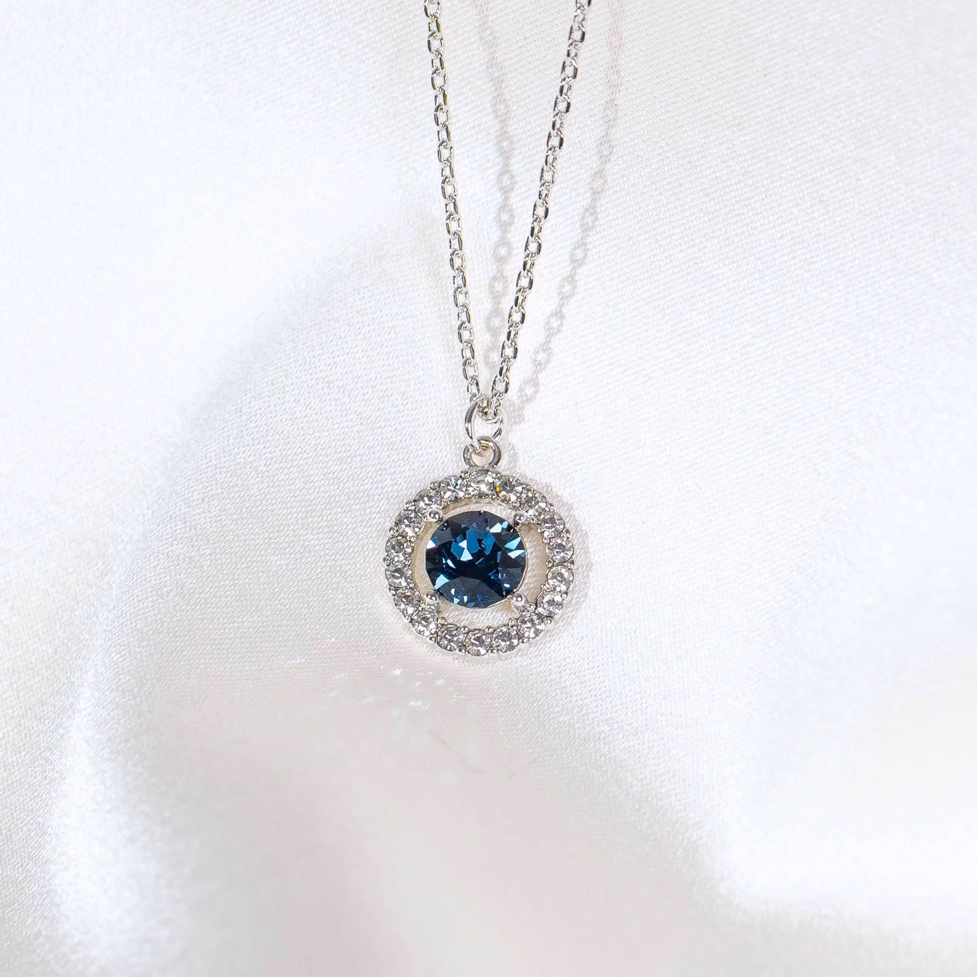 Vackert halsband i en glittrande rund form av Swarovski-kristaller som fångar ljuset vackert.