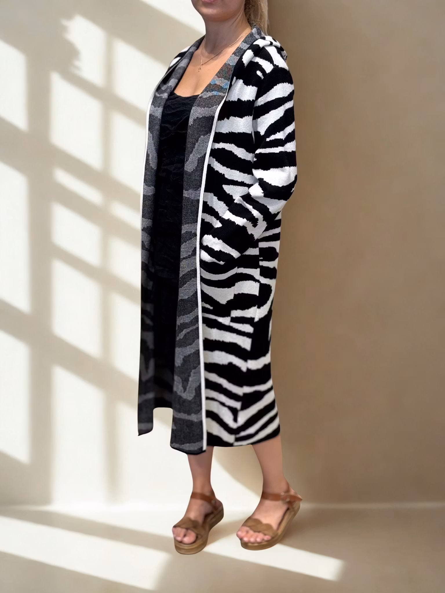 Så fin kofta i snyggt zebramönster som både värmer och lyfter din outfit.
