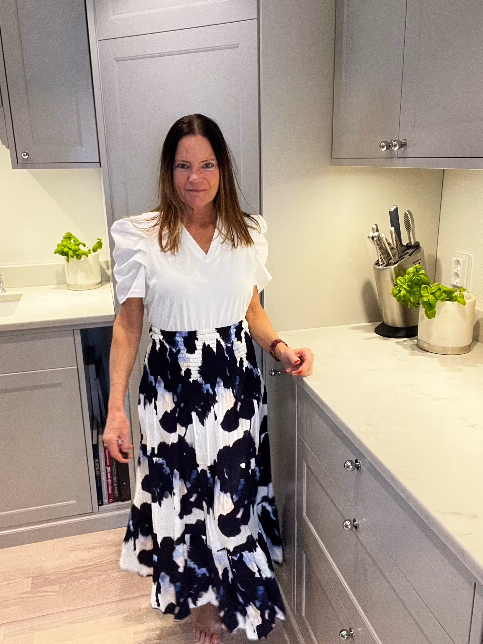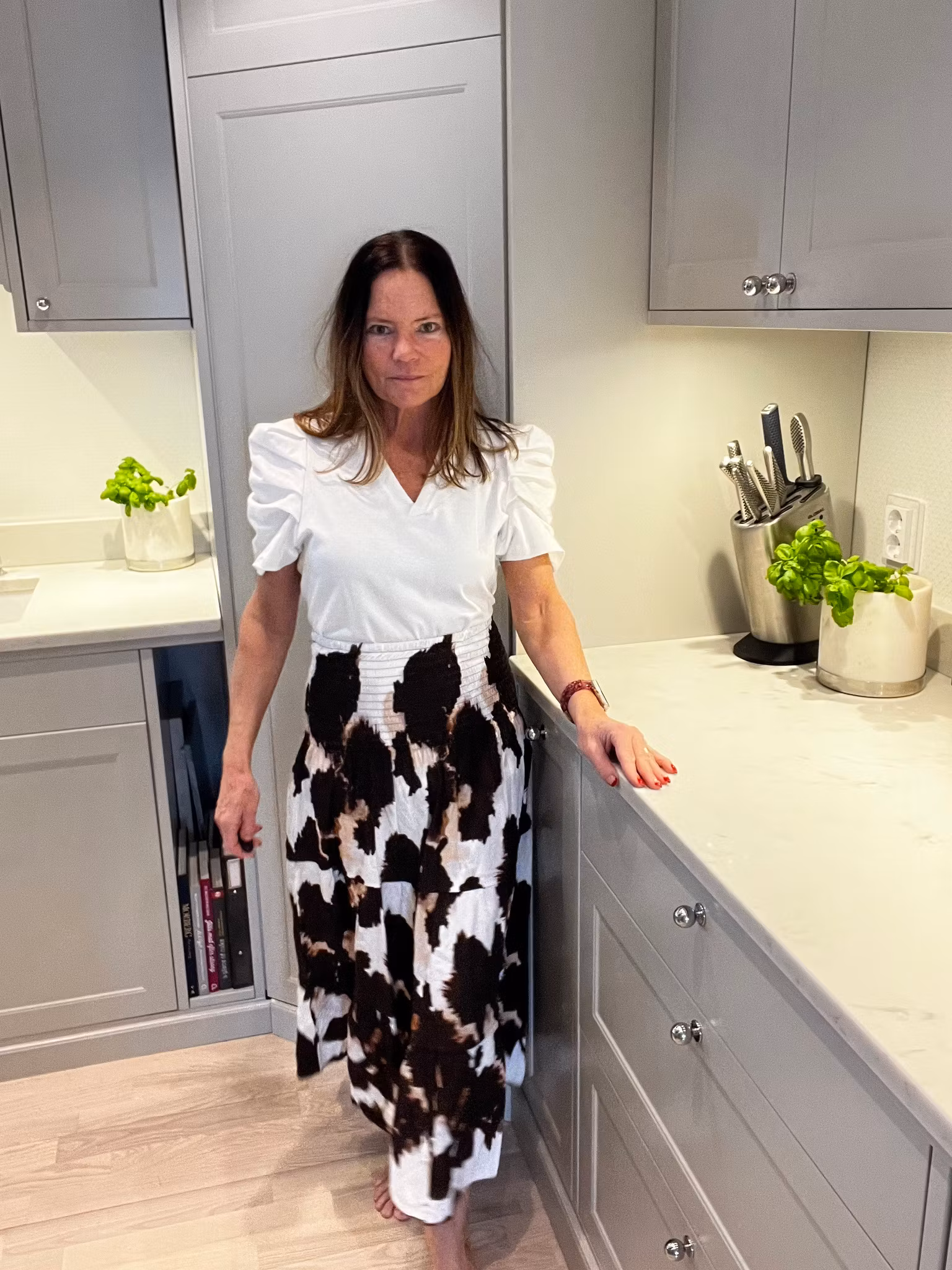 Söt topp med v-ringning och underbara puffärmar.