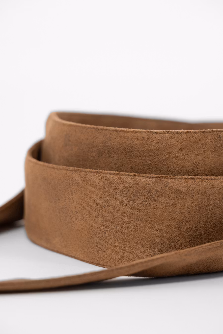 Detta snygga midjebälte är tänkt att viras två varv runt midjan och knytas framtill.