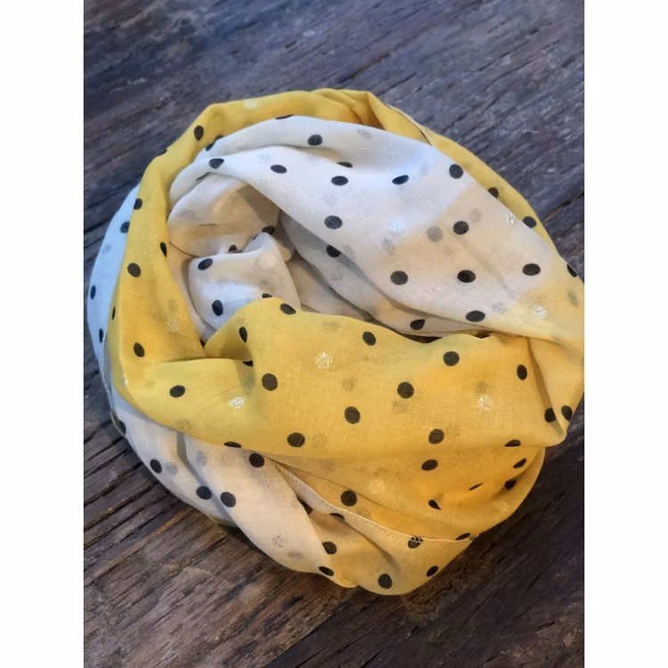 Ljuvliga vårsjalar med prickar i härliga vårfärger.