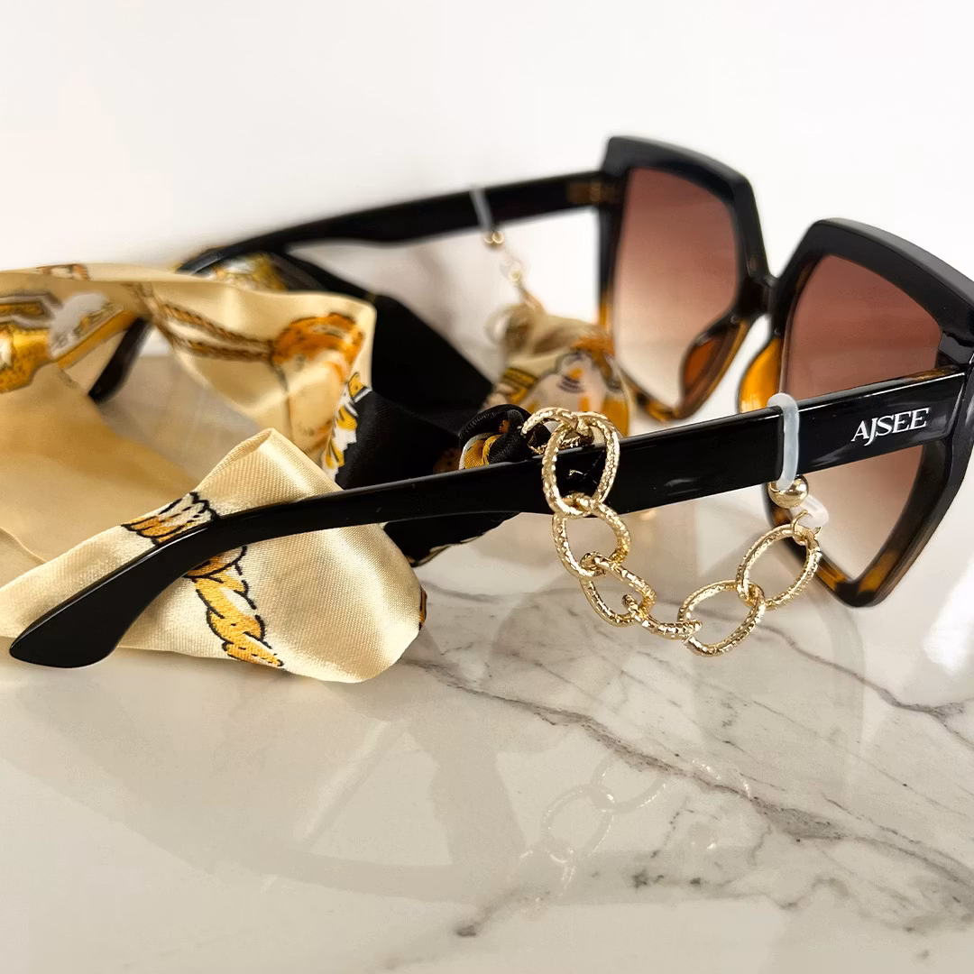 Oversize sunnies med gyllene bronsfärgat ljus för en classy moviestar look.