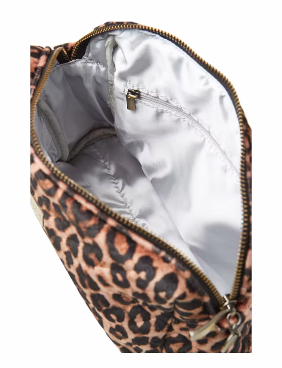 Foder i mjuk satäng med en öppen ficka och en dragkedjeförsedd ficka.