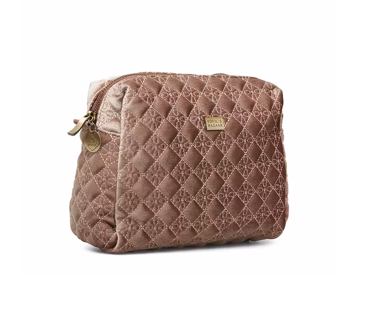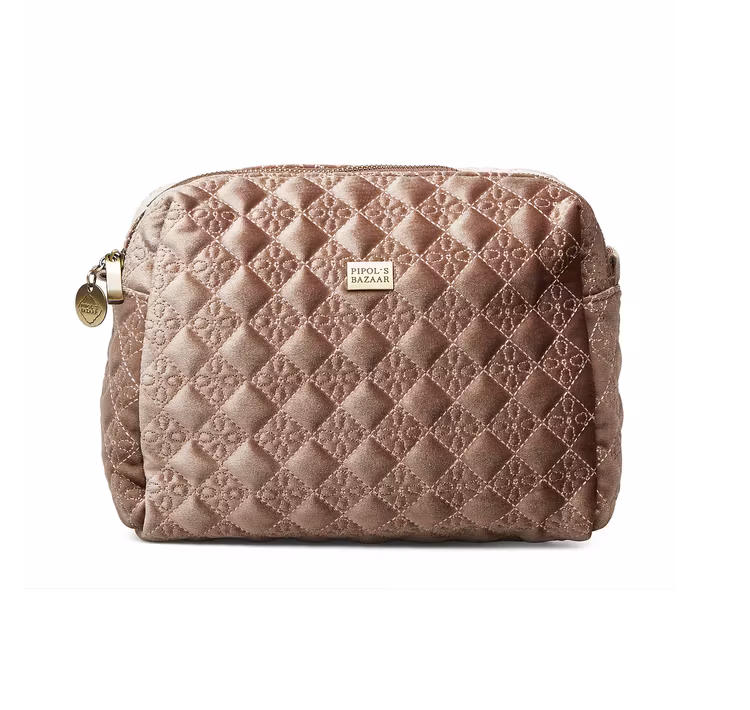 Necessären stängs med en dragkedja som har en medaljong med pipols bazaar- logga på.