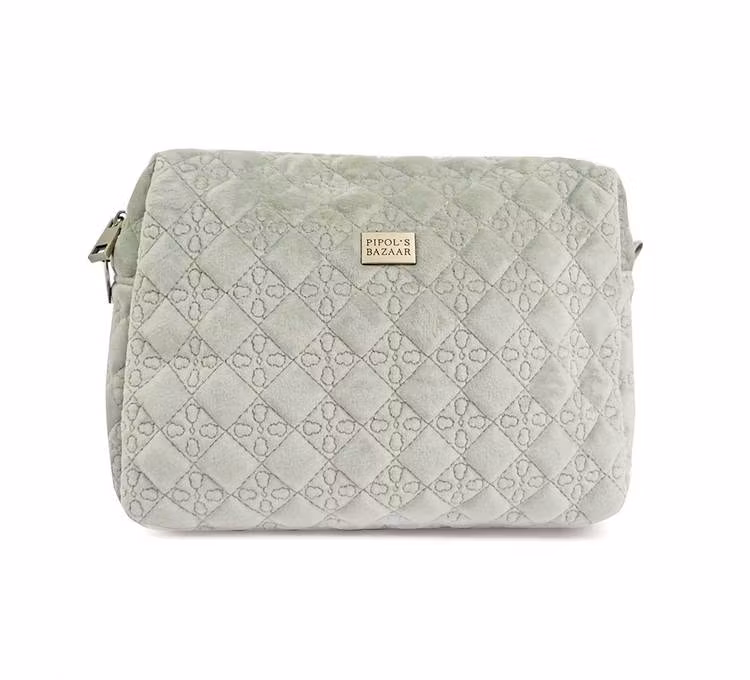 Necessären stängs med en dragkedja som har en medaljong med pipols bazaar-logga på.