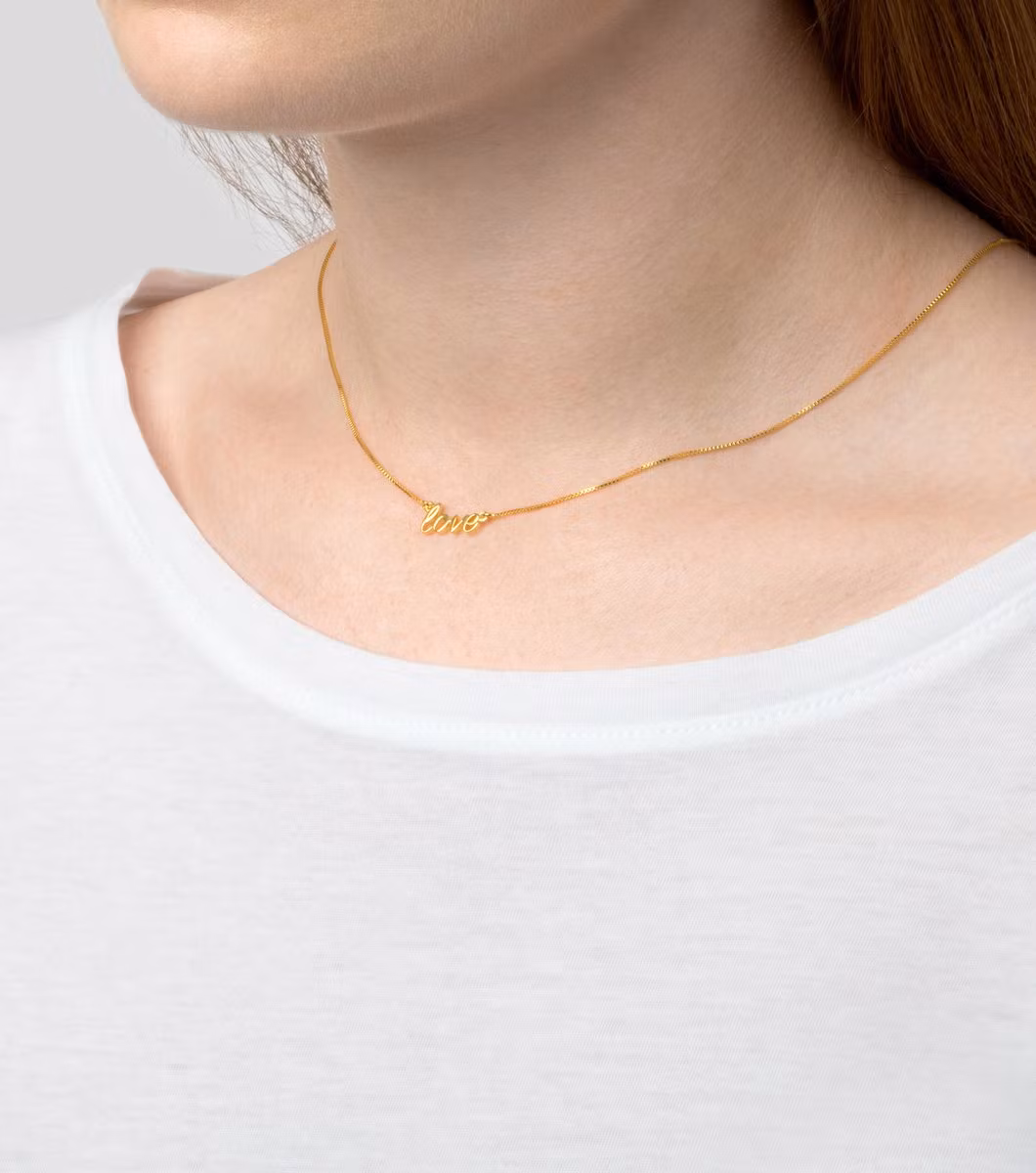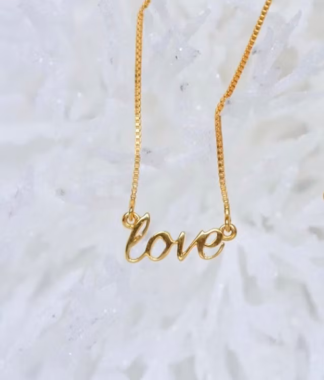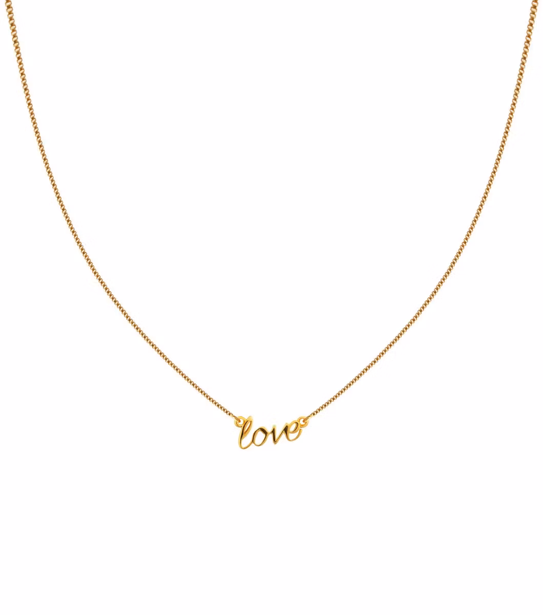 Kort, tunt halsband med bokstäverna "love" i sterling silverpläterat med 18K guld.