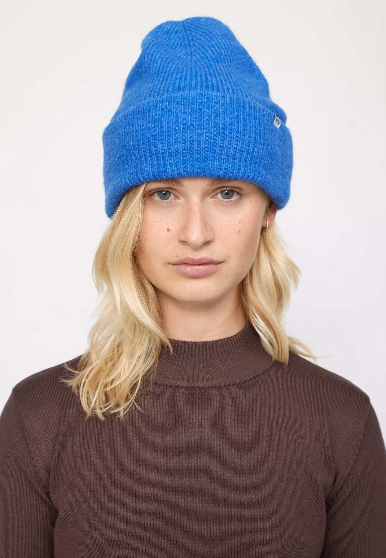 Så skön ribbstickad mössa.