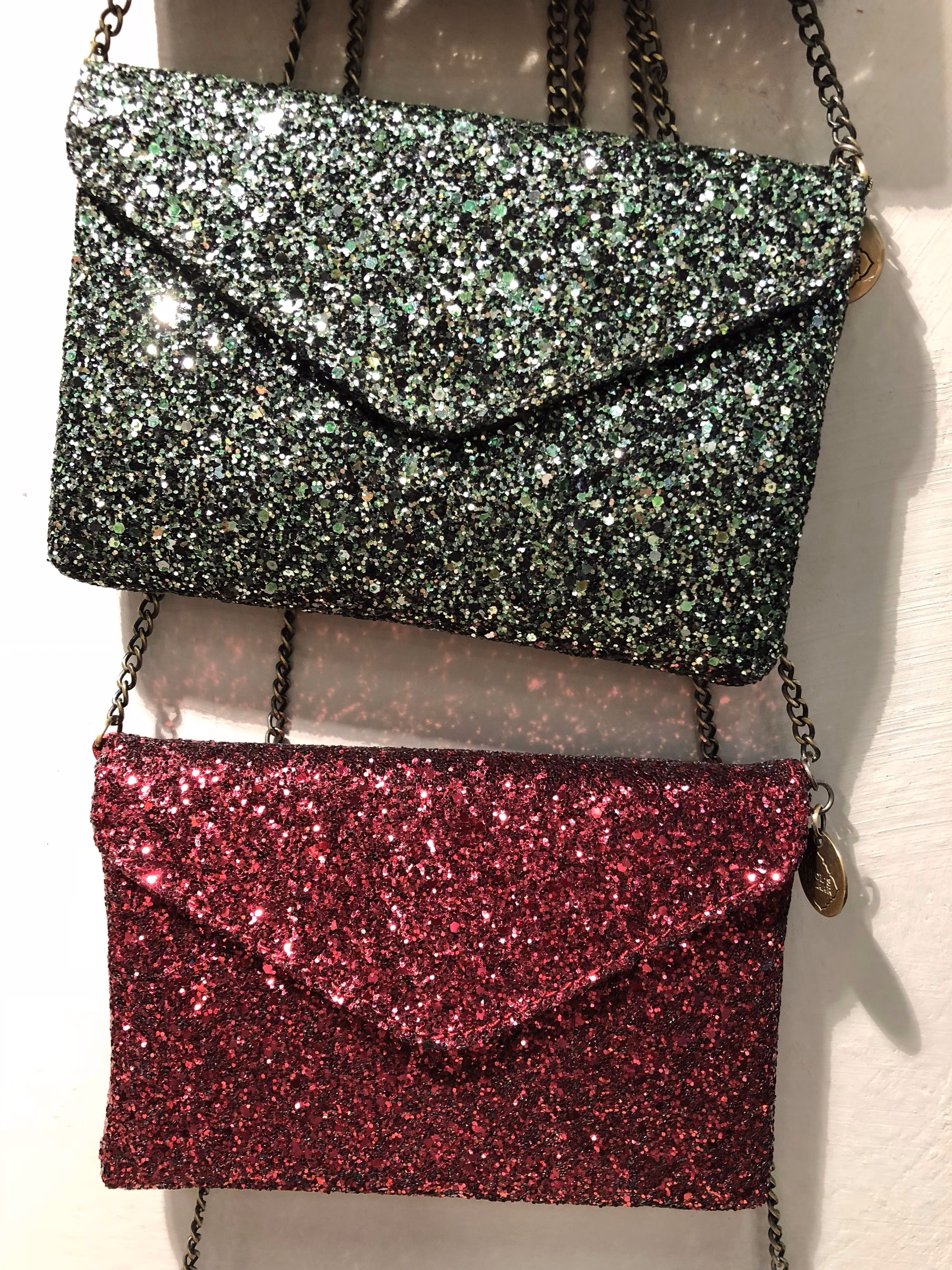 Den ultimata festväskan med glitter I höstens härliga färg grön.