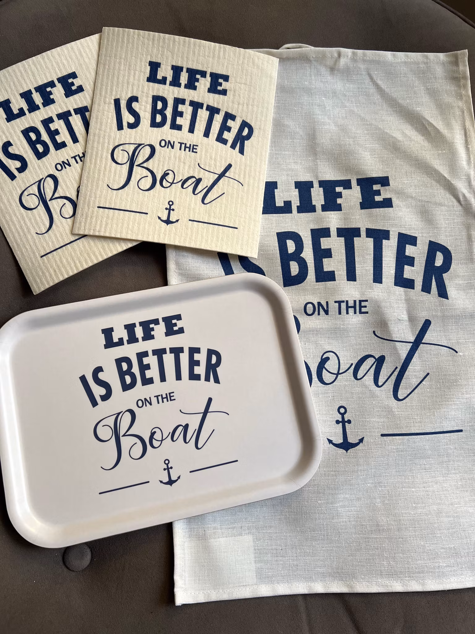 Kökshandduk 30x50 cm. Vit med blått tryck.