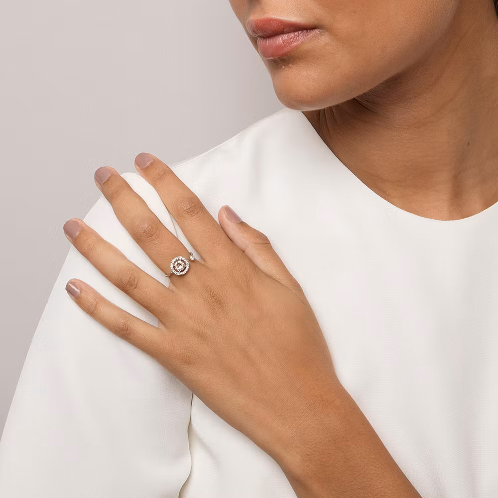 Vår signaturring, med en vacker romantisk och lyxig pinky-peach sten som